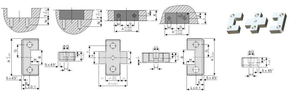 | W +.0000 -.0004 | T +.000 -.002 | X +.000 -.005 | A +.000 -.002 | C ±0.1 | D .0001/.0002 | R | S ±0.1 | P +.001 -.000 | 內六角螺場絲 internal hexagon screw S.H.C.S | |