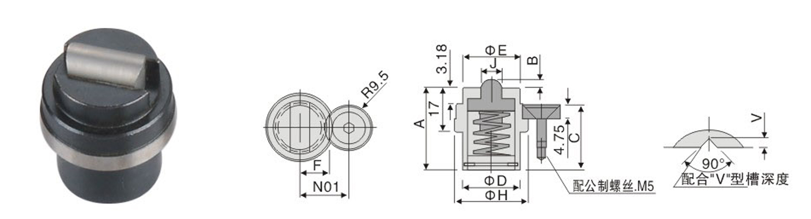 | A | B | C | ΦD | ΦE | *F | ΦH | J | N | V | Kgf | |