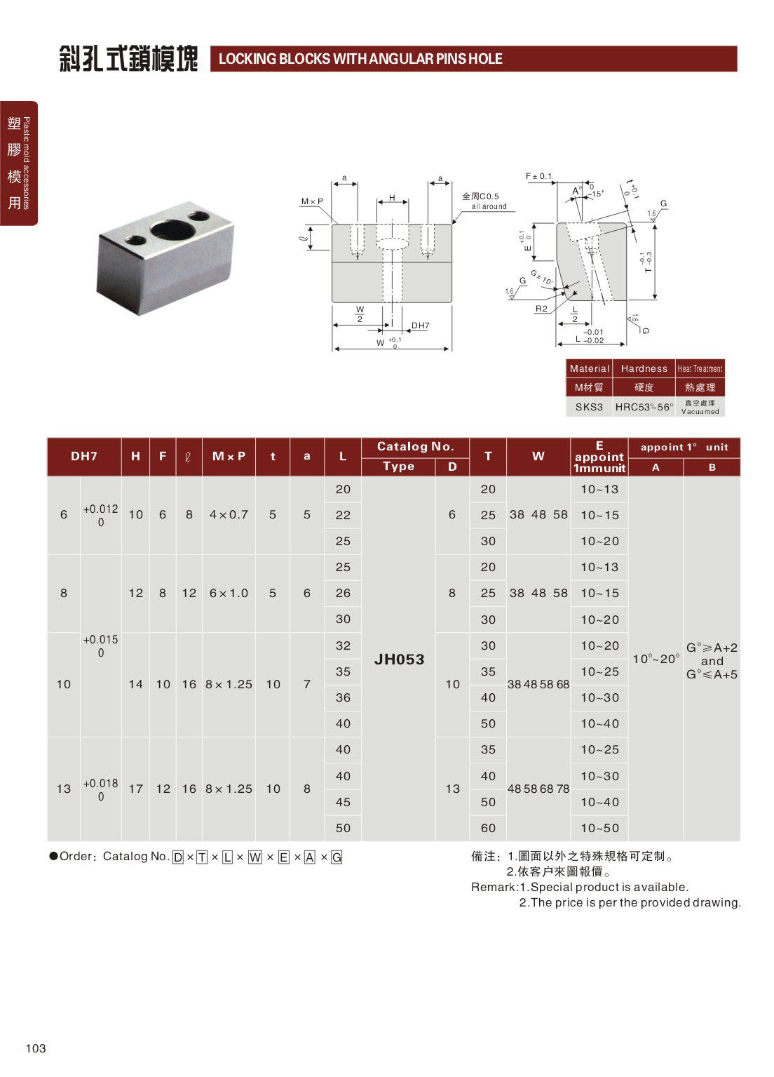 訂購:103-斜孔式鎖模塊 JH053