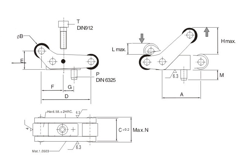 | Type | A | B | C | D | E | F | G | H max. | L max. | M | N | P | T | Max. Force |