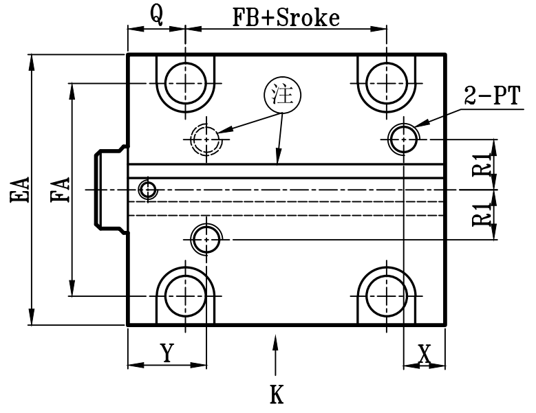 | 缸徑 BORE | BB | C | ΦD | EA | FA | EB | LH | Q | FB | S | G | ΦK1 | KA | KW | R1 | E | F | ΦK | ΦM | H | R | X | Y | PT | J | JH | O | OL | W | ΦV |