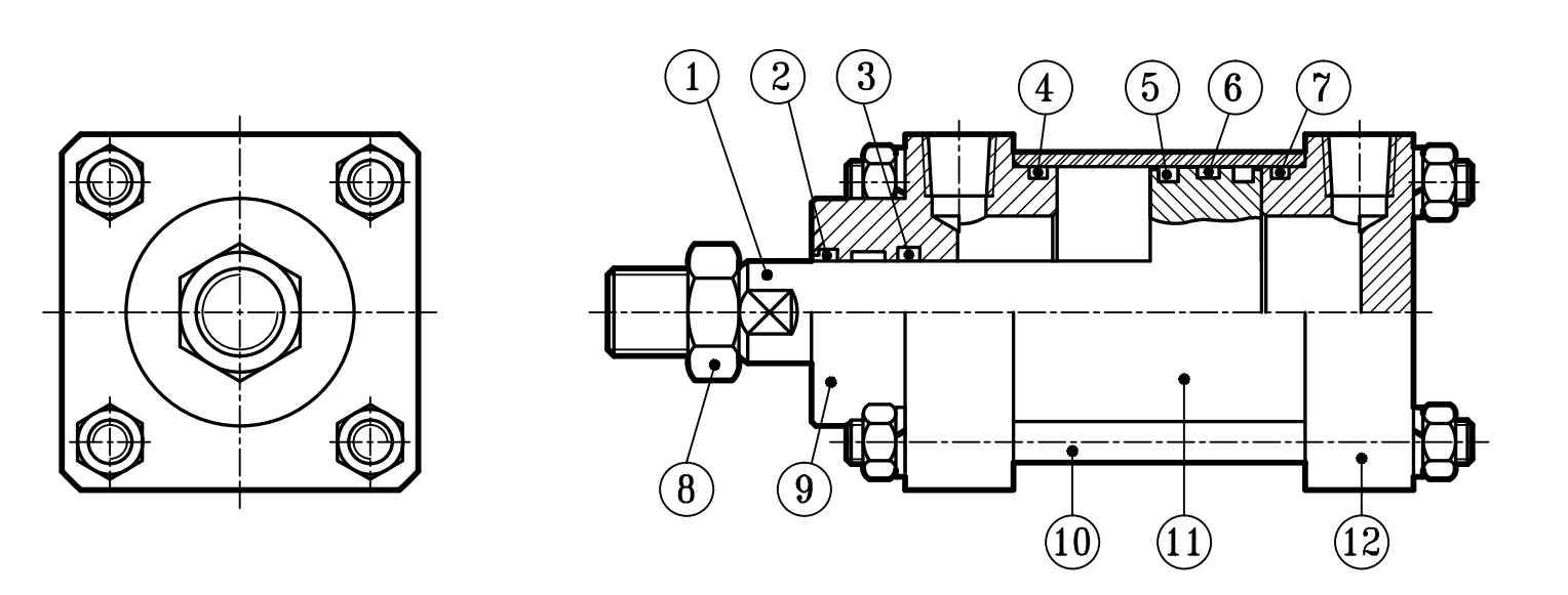 | 2 | 刮塵環(huán) Dust wiper | 1 | 7 | 活塞本體 Piston | 1 | 12 | 后蓋 End cover | 1 |