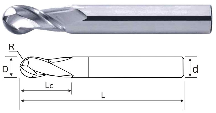 | 商品編號 Product number | 半徑(R) Radius of R | 刃徑(D) Blade diameter | 刃長(Lc) Blade length | 柄徑(d) Shank diameter | 全長(L) Overall length |