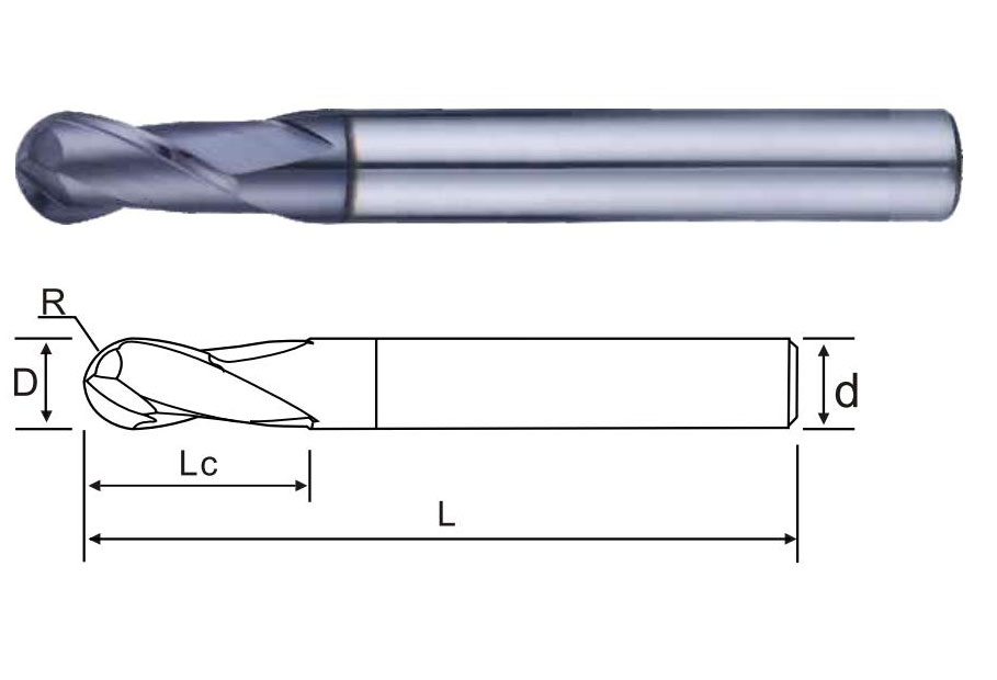 | 商品編號 Product number | 半徑(R) Radius of R | 刃徑(D) Blade diameter | 刃長(Lc) Blade length | 柄徑(d) Shank diameter | 全長(L) Overall length | 刃數 Flute |