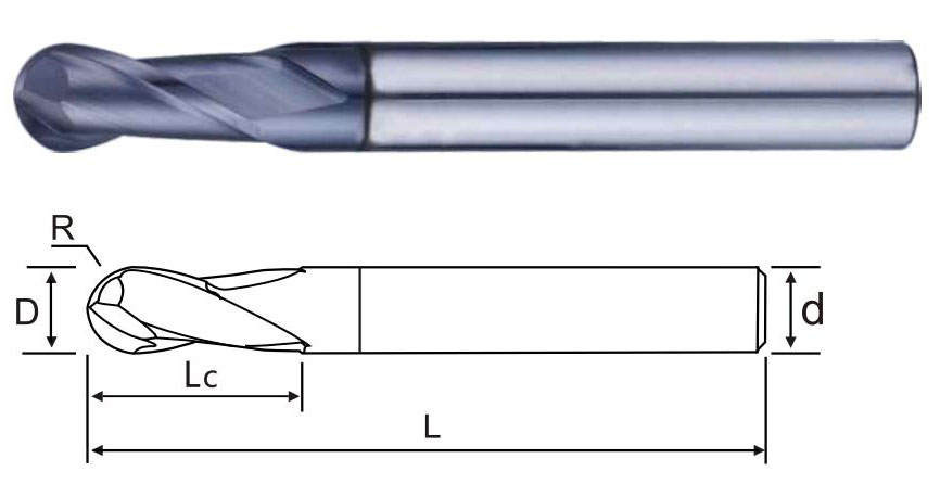 | 商品編號 Product number | 半徑(R) Radius of R | 刃徑(D) Blade diameter | 刃長(Lc) Blade length | 柄徑(d) Shank diameter | 全長(L) Overall length | 刃數 Flute |